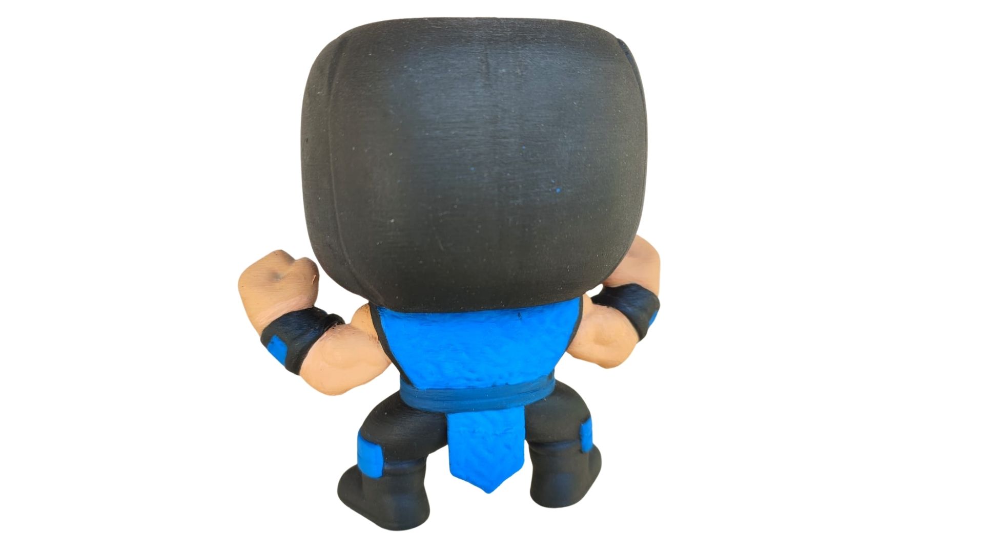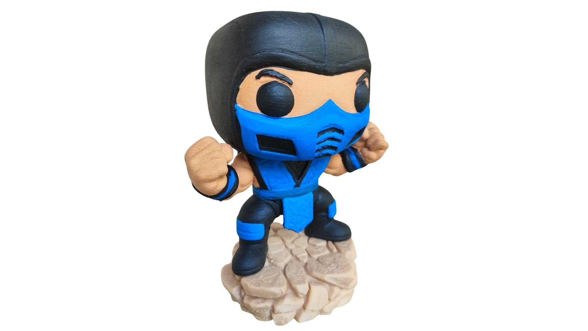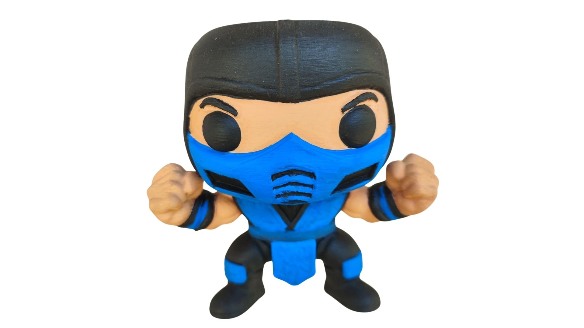Fabricado em material PLA, o Sub-Zero é leve, pesando apenas 100 g, o que o torna fácil de exibir em qualquer prateleira ou mesa. Embora não seja articulado, sua pose fixa transmite a força e a determinação do personagem, tornando-o uma adição valiosa para qualquer coleção.